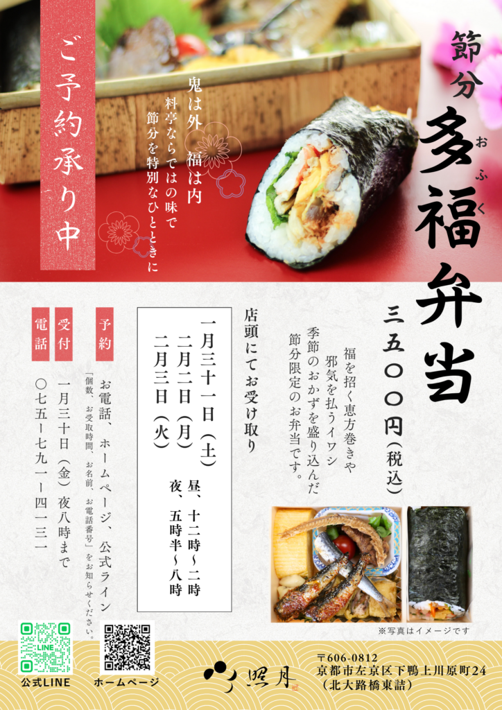 忙しい日常の中でも、節分の行事を気軽に取り入れられる多福弁当で、和の心を感じる時間をぜひお楽しみください。